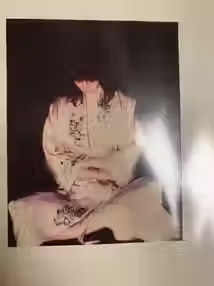 In the studio I could see private customers, taking commissions for a variety of garments, amongst which were one-off jackets that were entire paintings wrapped around the customer. (See Turtle, Kingfisher, Jungle jackets). These sold to a shop on Rodeo Drive in L.A. and to a variety of individuals including Matthew Kelly, plus Wardrobe in Bond Street ordered Hummingbird jackets - one of which went to Elton John.